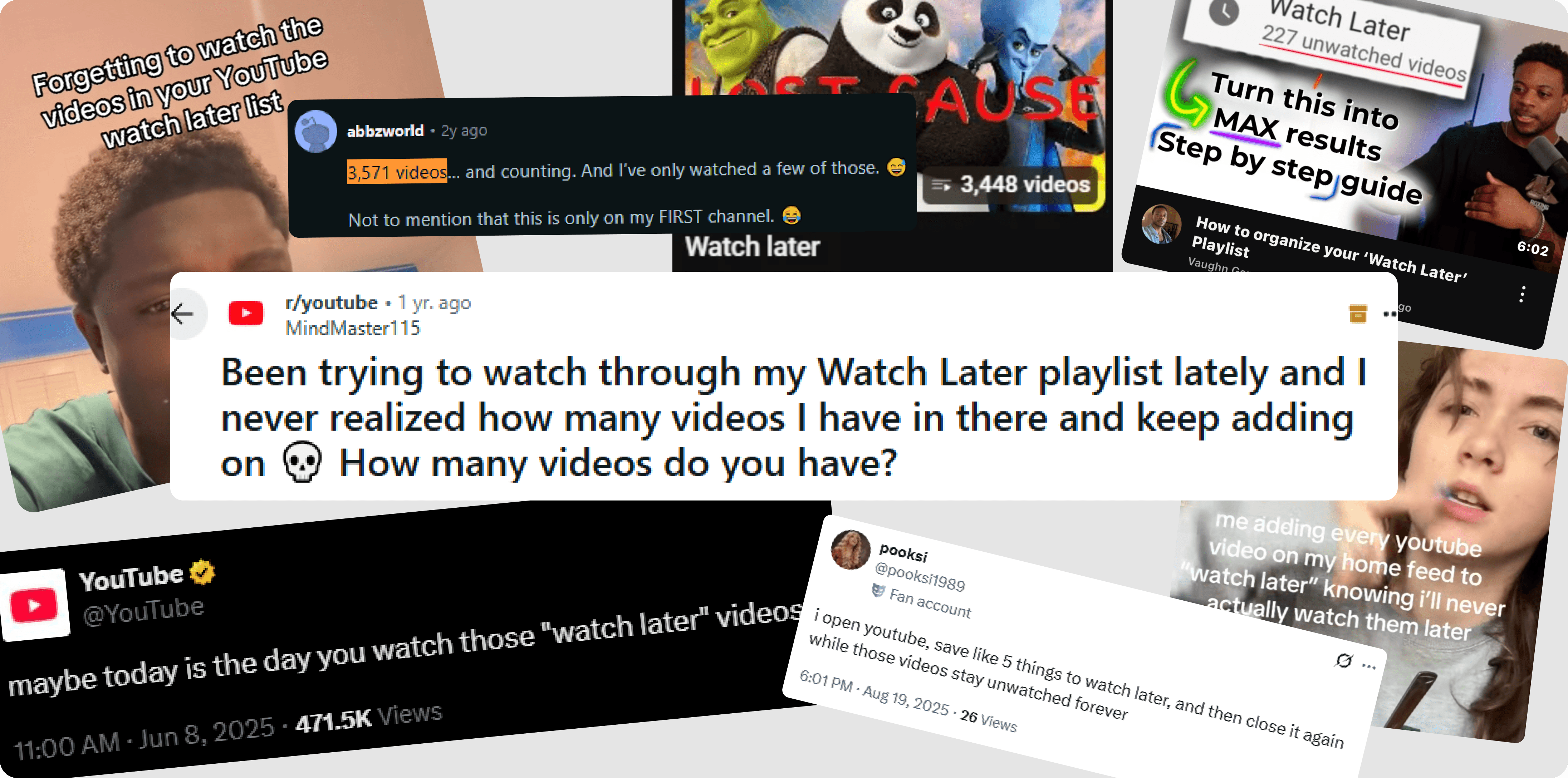 Online discussions reveals the same pain point over and over: users mentioning their Watch-Later lists 300, 600 even 1,000+ videos deep. Users aren’t saving a few videos, they’re accidently building a massive library.