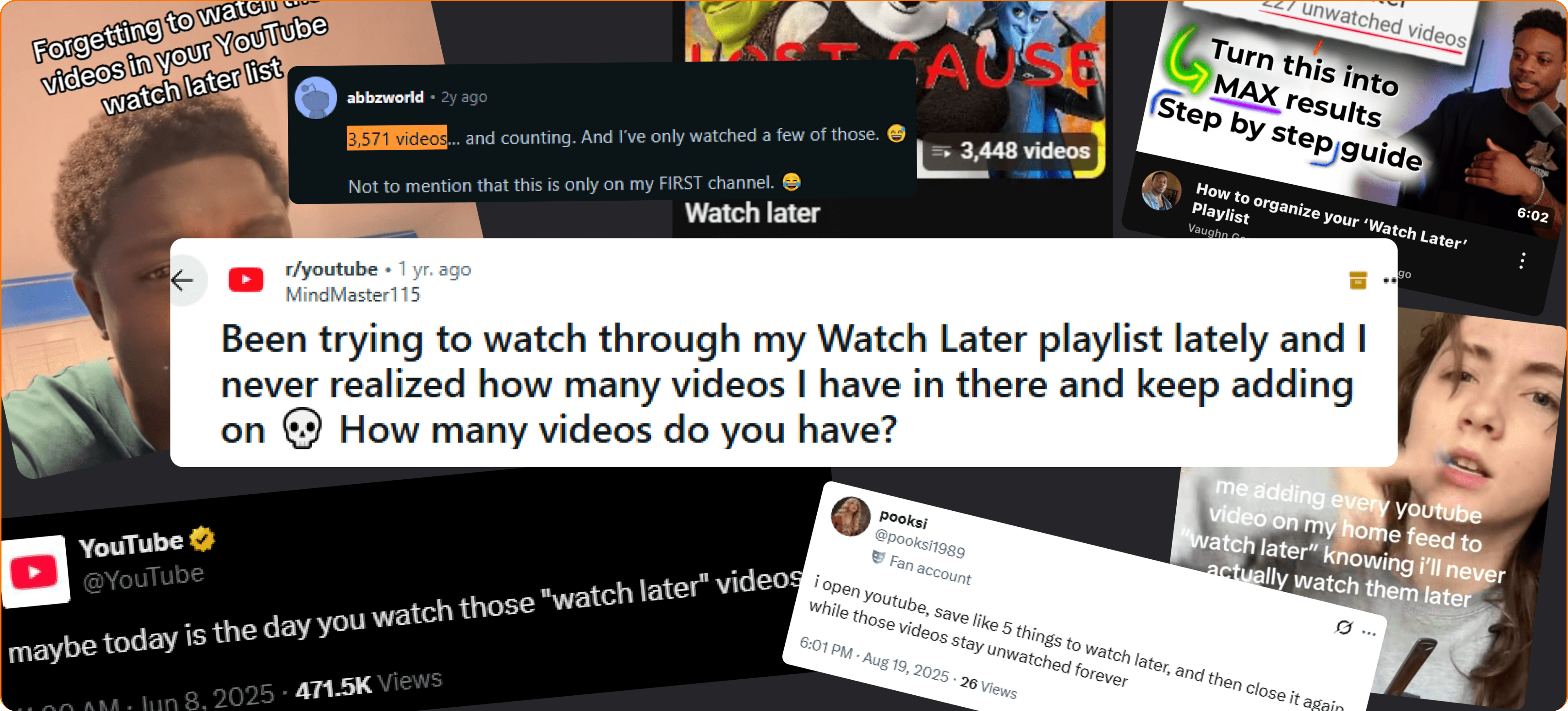 Online discussions reveals the same pain point over and over: users mentioning their Watch-Later lists 300, 600 even 1,000+ videos deep. Users aren’t saving a few videos, they’re accidently building a massive library.